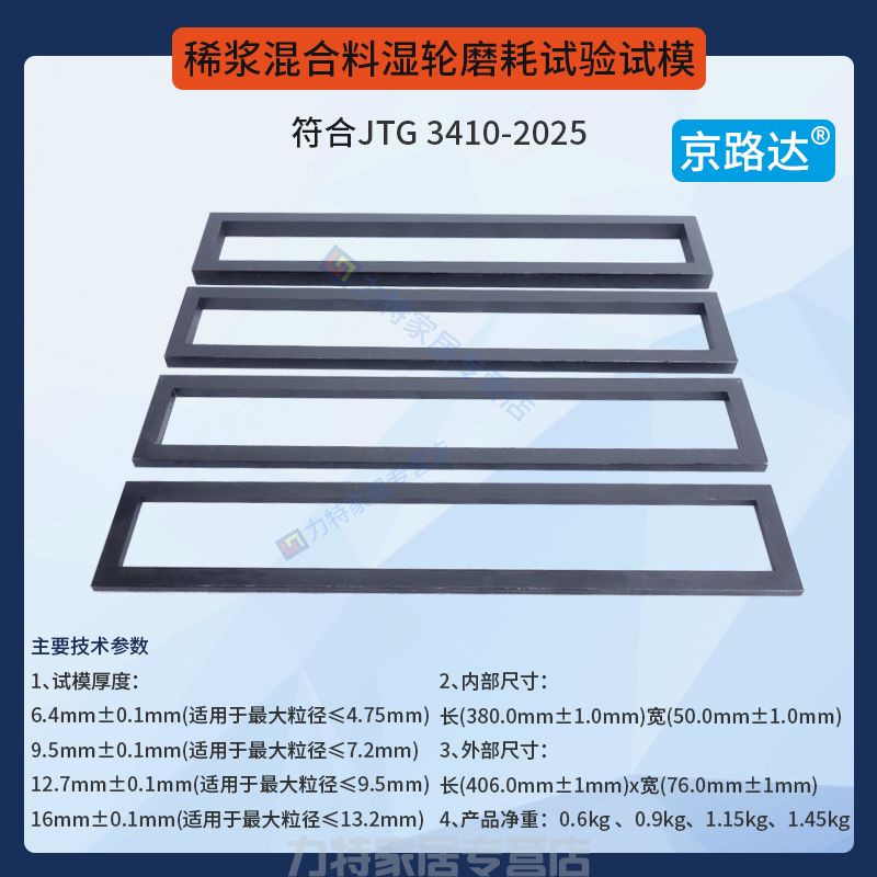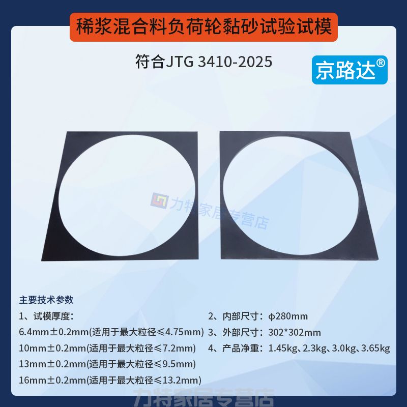 - 稀浆混合料负荷轮黏砂试验试模用于稀浆混合料负荷轮黏砂试验的试样制备,以进行试验确定其沥青用量的上限。符合JTG 3410-2025《公路工程沥青及沥青混合料试验规程》的标准要求。稀浆混合料湿轮磨耗试验试模用于稀浆混合料湿轮磨耗试验的试件制备,检验稀浆混合料的配伍性。符合JTG 3410-2025《公路工程沥青及沥青混合料试验规程》的标准要求。...