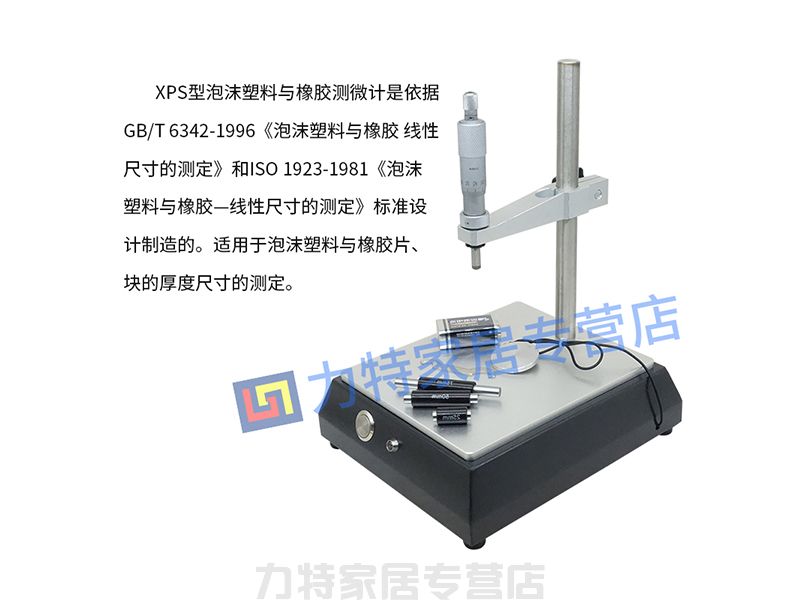 XPS型泡沫塑料与橡胶测微计是依据GB/T 6342-1996《泡沫塑料与橡胶 线性尺寸的测定》和ISO 1923-1981《泡沫塑料与橡胶—线性尺寸的测定》标准设计制造的。适用于泡沫塑料与橡胶片、块的厚度尺寸的测定。